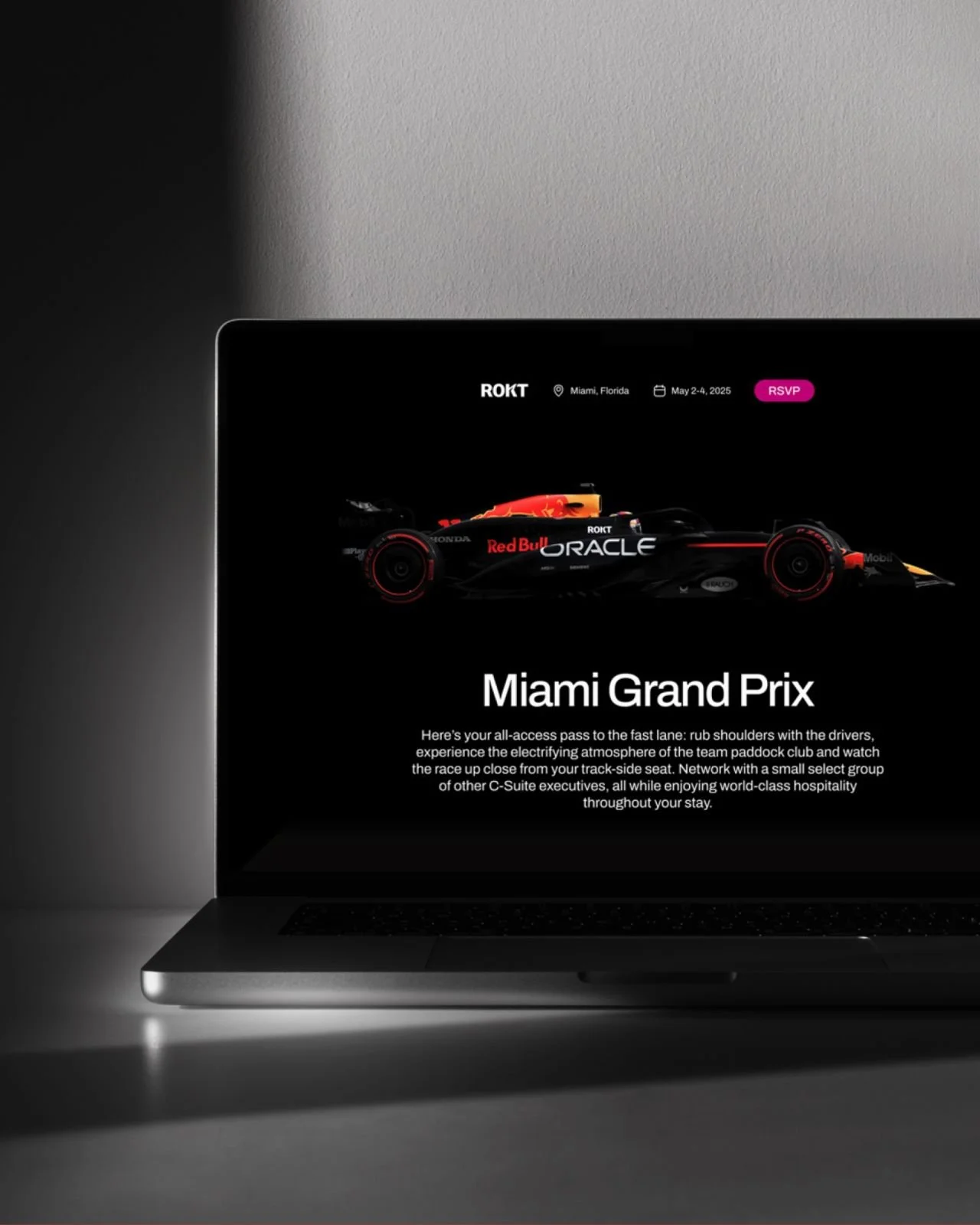 Rokt collaborates with Red Bull Racing and organizes multiple F1 Academy racing events each year. During my time at Rokt, I designed a series of event landing pages, as well as physical and digital invitations. Below are examples from the British Grand Prix, one of 24 events.